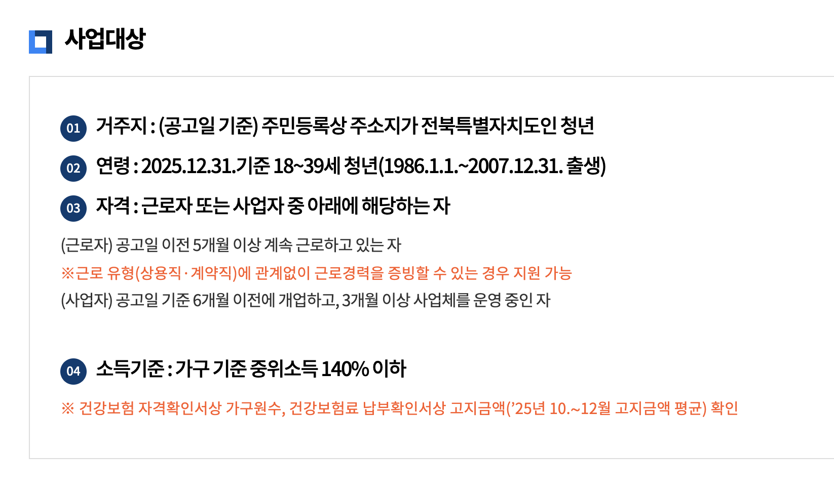 - 만 18세 이상~39세 이하 청년 (연도 기준에 따라 변동될 수 있음)