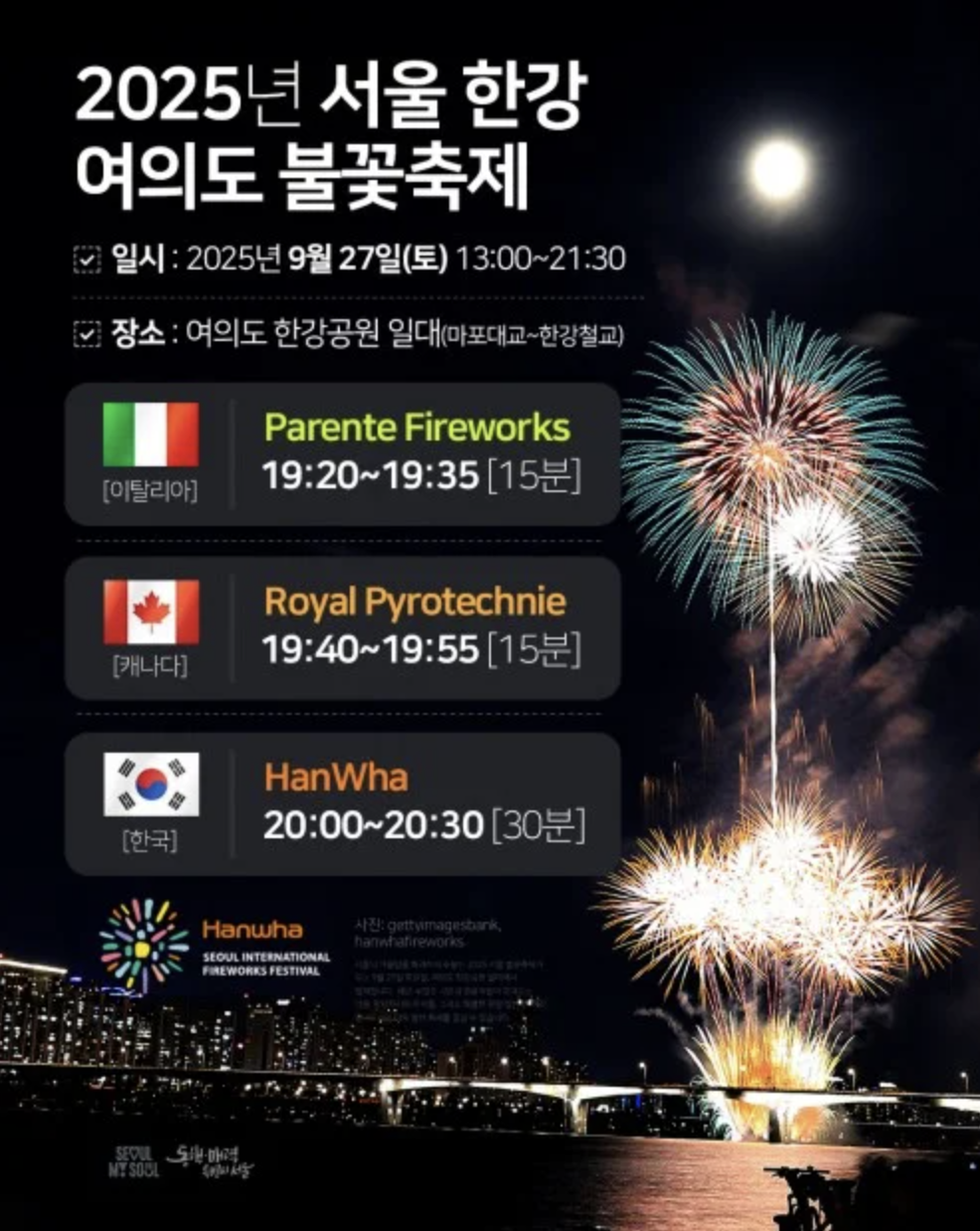 - 행사명: 한화와 함께하는 서울 세계불꽃축제 2025